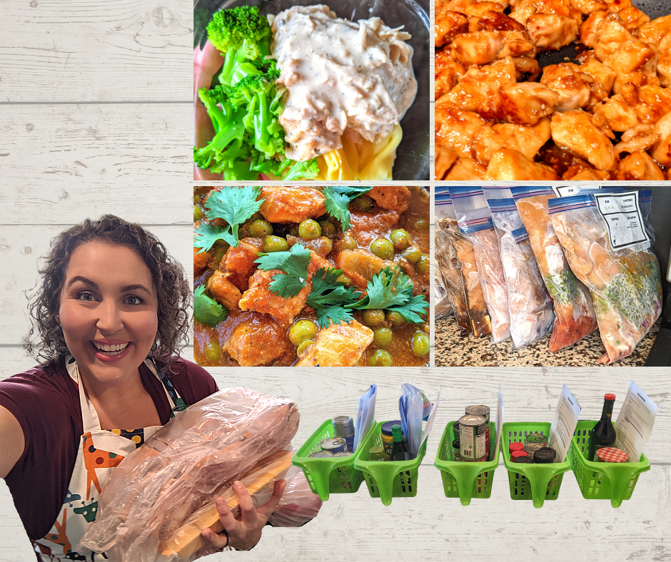 Together we will make 10 time saving homemade meals featuring chicken. These meals will be ready in your freezer whenever your family needs them!